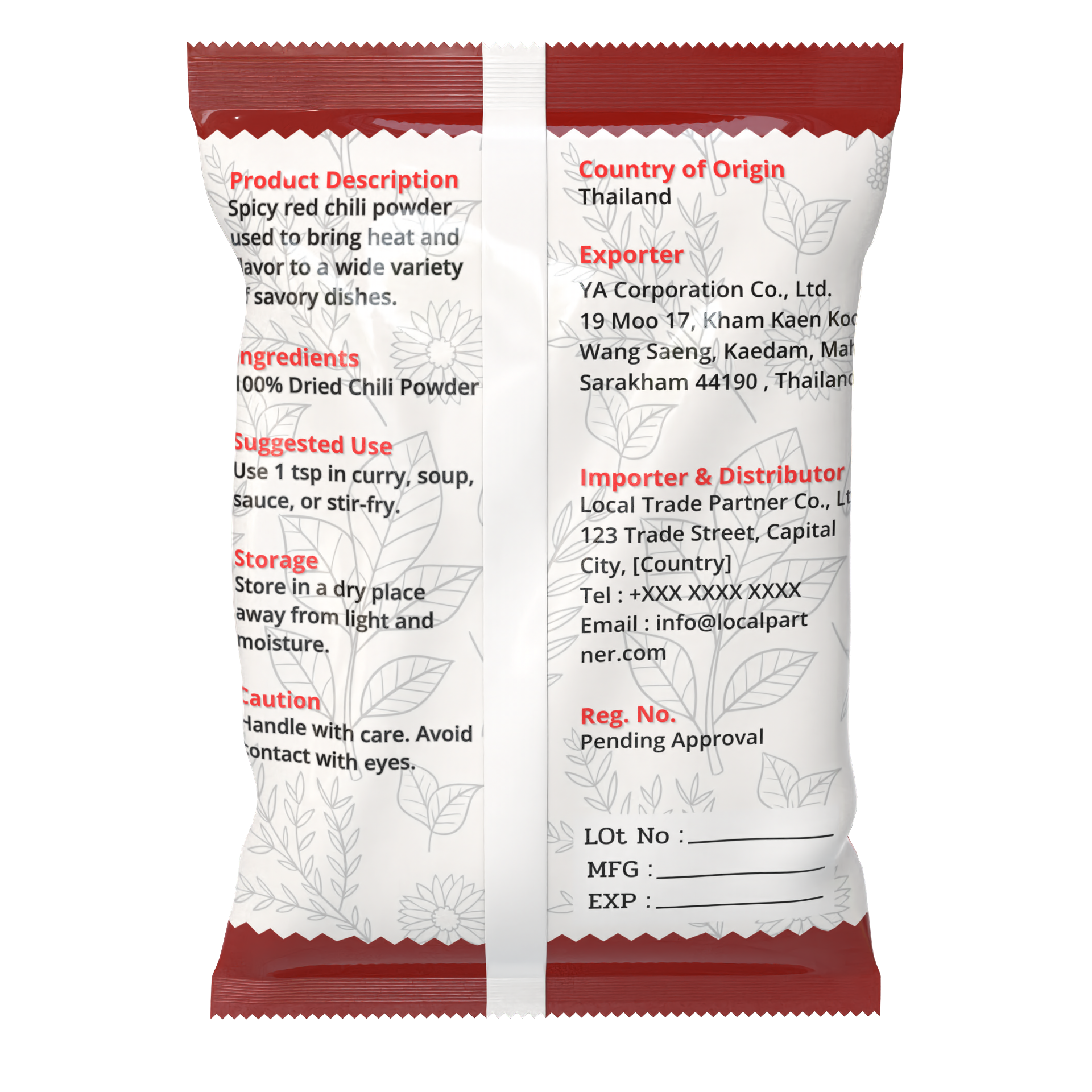 Ingredients | 100% Dried Chili Powder |