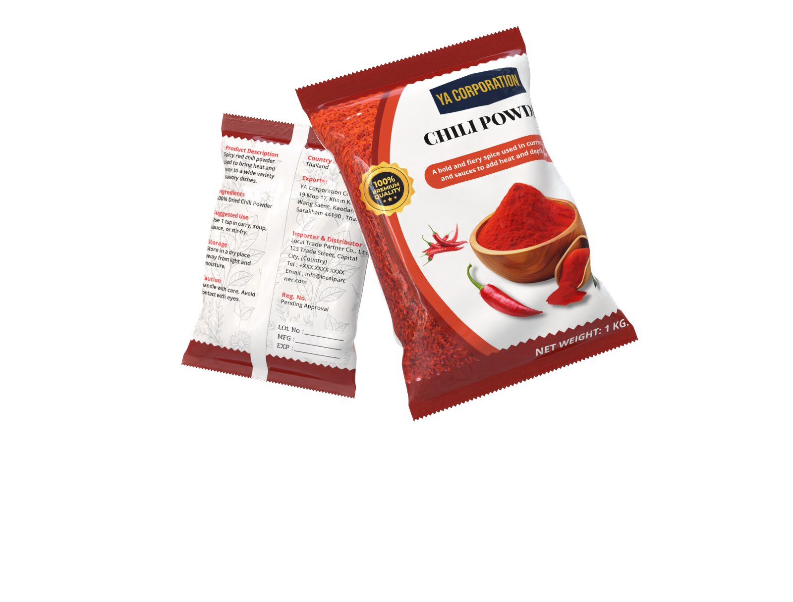 Primary pack : Laminated food-grade pouch (100 g / 250 g / 1 kg) or bulk sack (25–50 kg)