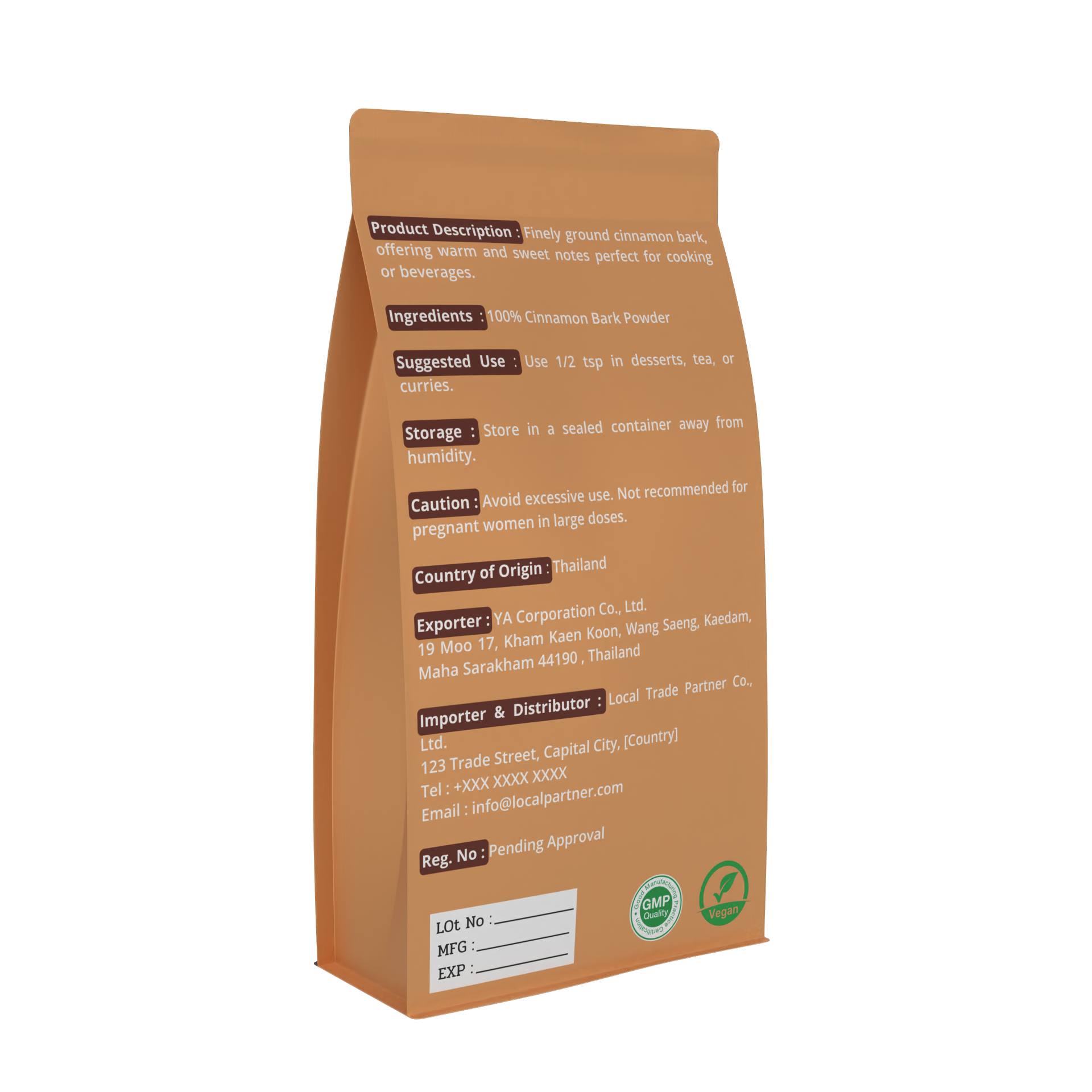 Finely ground cinnamon bark powder offers warm, sweet, and woody notes ideal for both sweet and savory applications. Sourced from premium Cinnamomum verum bark, this versatile spice enhances baked goods, beverages, curries, and more with its characteristic aroma and flavor.