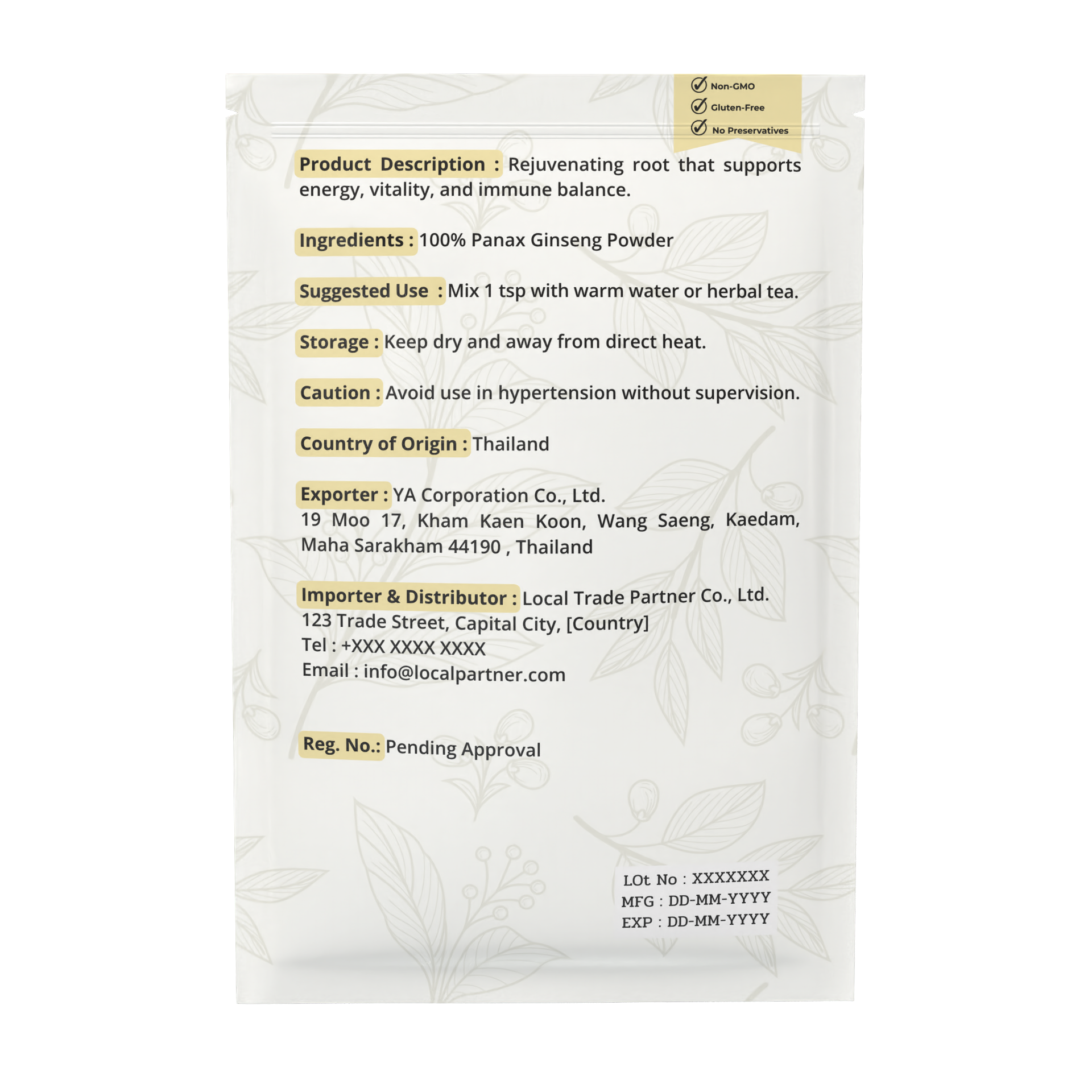 Key Features | 100% pure ginseng root powder, no additives |